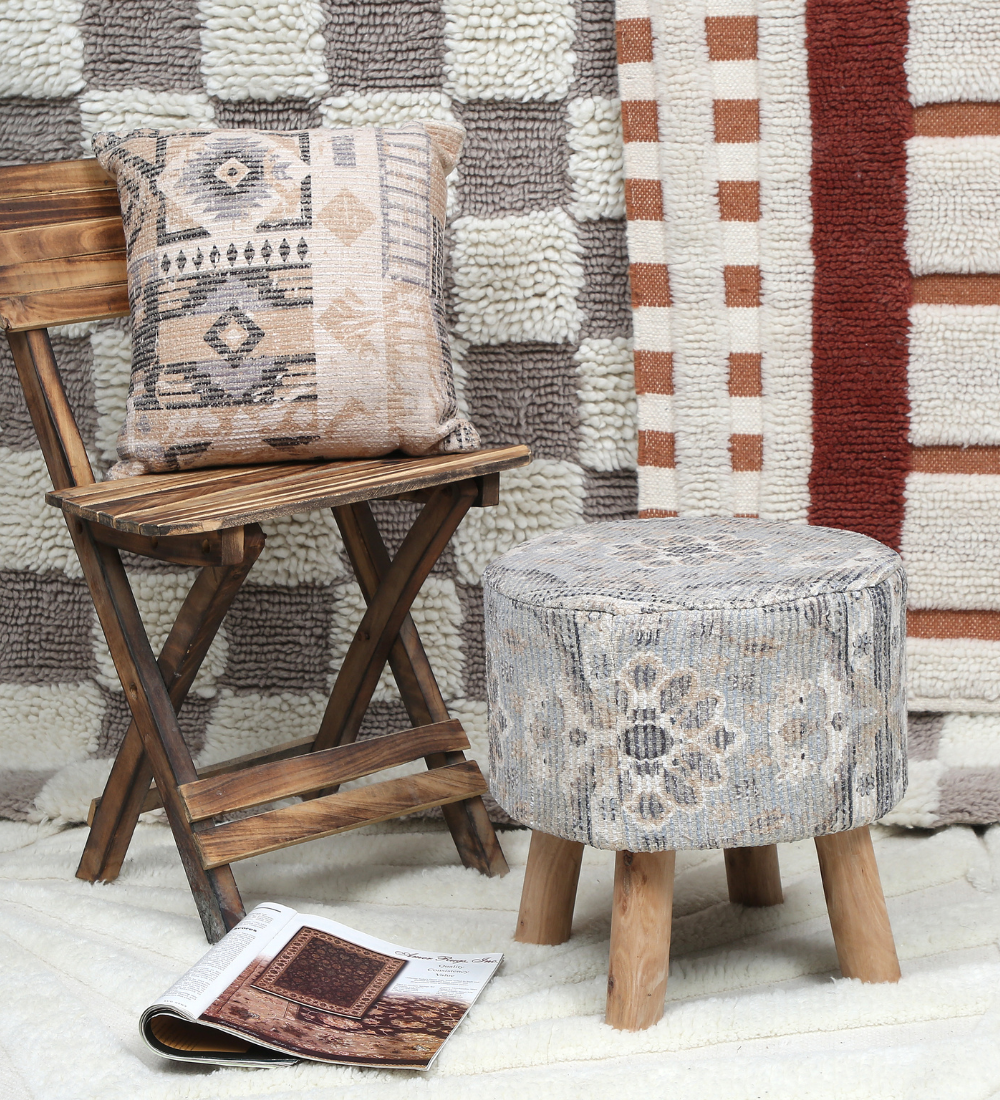 Our poufs and stools blend utility with handcrafted appeal — perfect for modern homes, small-space living, and accent styling. Produced using techniques like tufting, weaving, braiding, and jacquard, these pieces are supported by our in-house stitching, stuffing, and finishing setups for consistency and quality control.